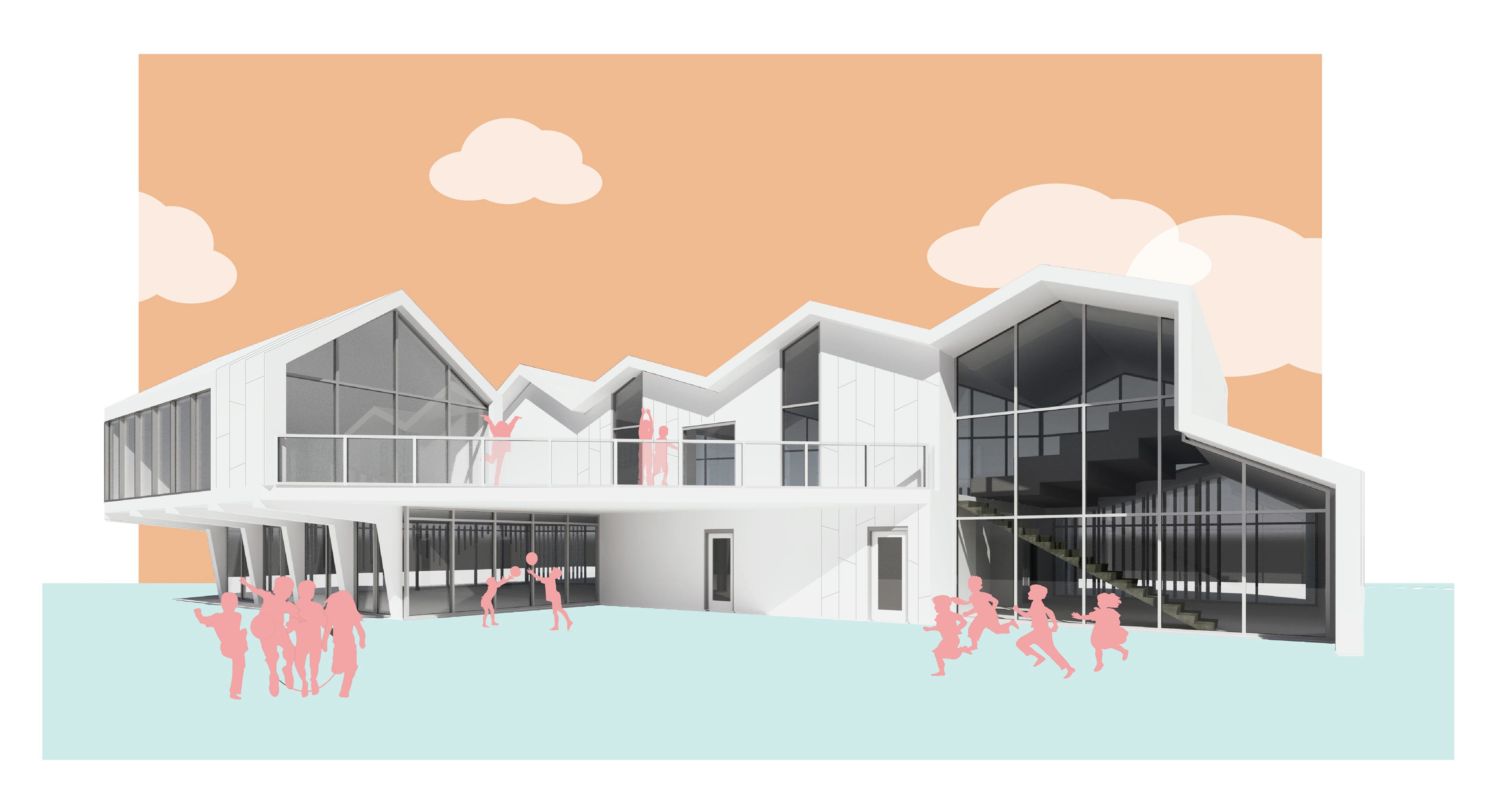 This project focuses on creating flexible spaces for children of varying ages. The building’s form resembles the classic house shape to make the building more appealing and playful for children. The roof’s angles are inspired by Amsterdam’s varying skyline.